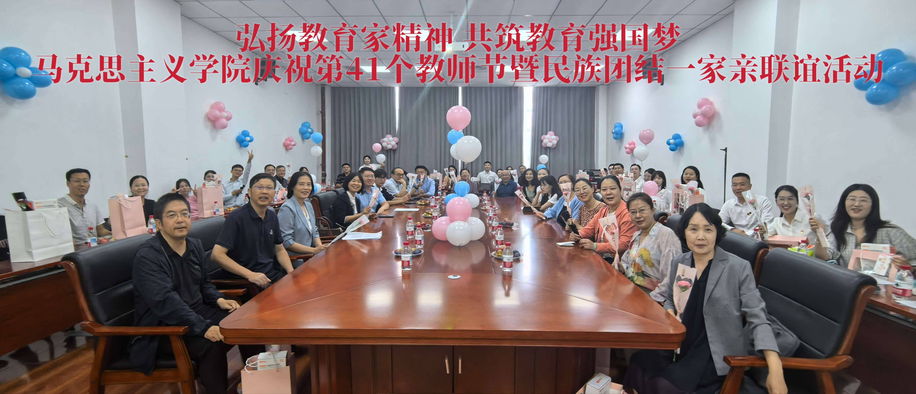 为深入贯彻落实习近平总书记关于教育的重要论述及全国教育大会精神,在第41个教师节来临之际,马克思主义学院于9月9日在北区学术交流中心举办 “弘扬教育家精神 共筑教育强国梦”庆祝第41个教师节暨民族团结一家亲联谊活动。学院领导和全体教职工与“小亲戚”欢聚一堂,在内容丰富、形式多样的活动中共庆节日、共话团结,凝聚起兴教育人与民族团结的强大合力。