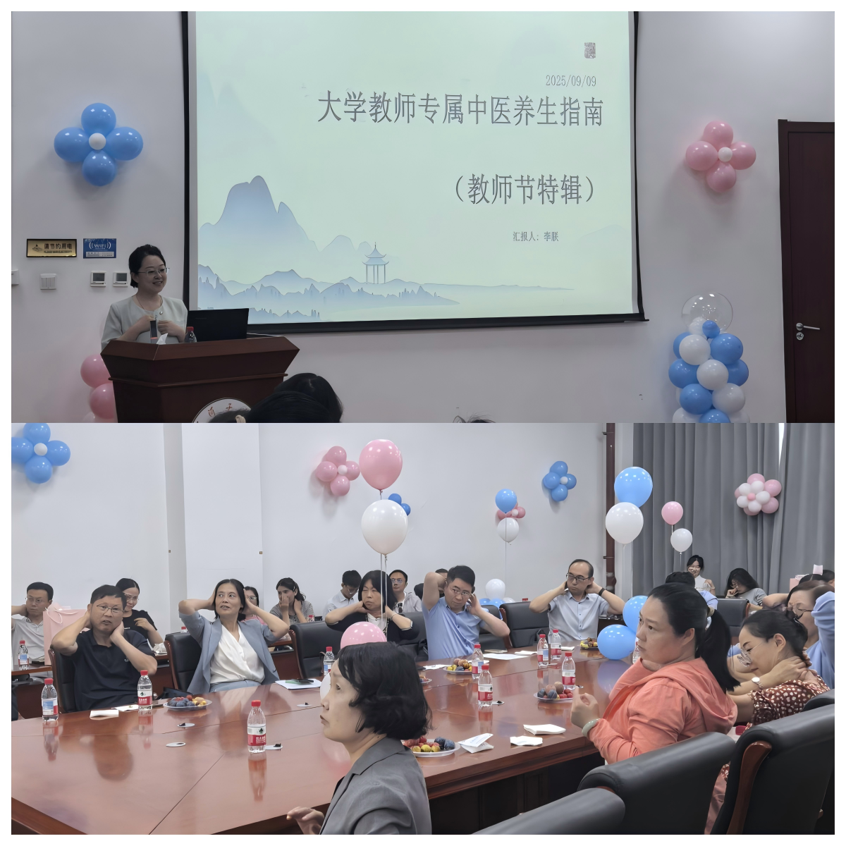 教师身心健康是保障教育教学质量的重要基石。活动特邀附属中医医院专家李朕主任开展健康养生讲座。针对教师长期伏案备课、站立授课等职业特点,李朕主任从饮食调理、运动保健、作息规律、心理疏导四大维度,分享科学实用的健康知识;同时聚焦教师常见的颈椎腰椎不适问题,现场演示实践,为教职工健康生活提供专业指导。