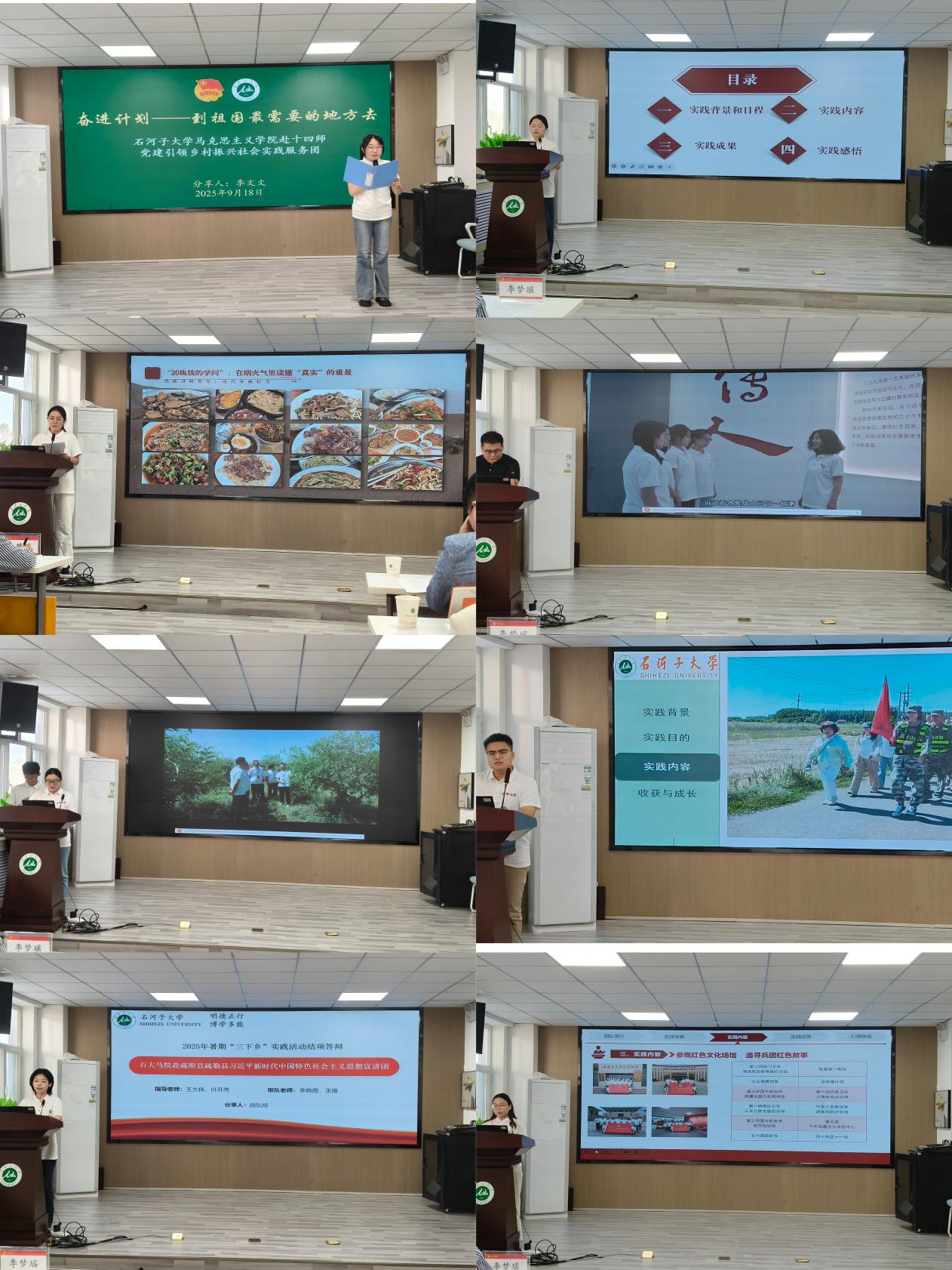 为深入总结实践成果、凝聚青年奋进力量,引导广大学生将实践感悟转化为成长动力,9月18日上午,马克思主义学院在学术报告厅成功举办“奋进计划——到祖国最需要的地方去”石大青年说系列活动,设有“实践归来故事分享会”与“师生交流座谈会”两大环节,石河子大学团委副书记李梦瑶、马克思主义学院副院长朱文,8支实践团师生代表及全体研究生共同参加。