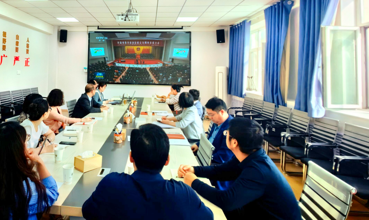 会上,与会人员首先观看、学习了“习近平参观新疆维吾尔自治区成立70周年主题成就展”“习近平听取新疆维吾尔自治区党委和政府工作汇报”“习近平出席新疆维吾尔自治区成立70周年庆祝大会”等相关报道。集体学习了“中共中央 全国人大常委会 国务院 全国政协 中央军委关于庆祝新疆维吾尔自治区成立70周年的贺电”,王沪宁在新疆维吾尔自治区成立70周年庆祝大会上的讲话。