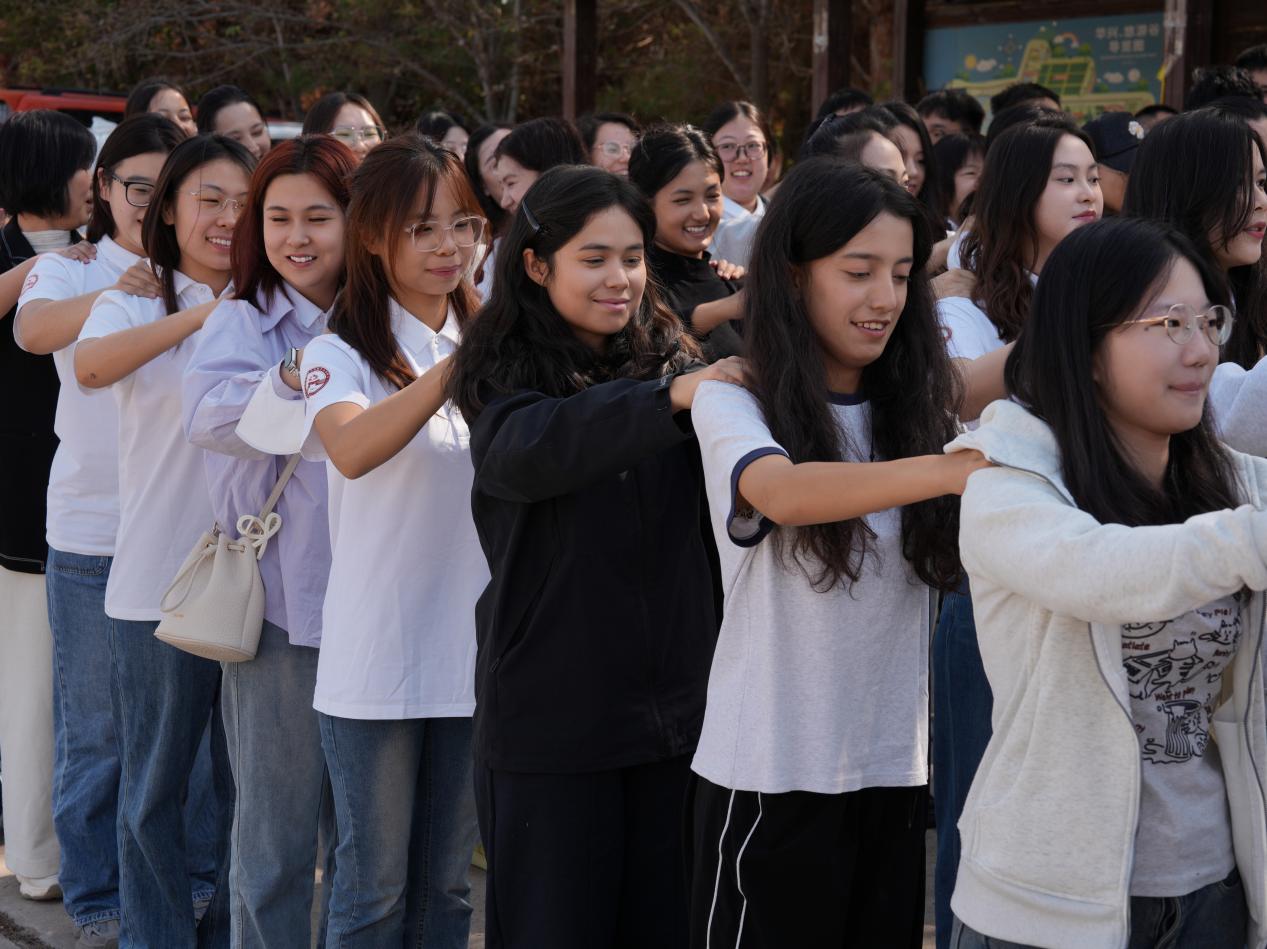 在昌吉素质拓展基地,学生代表深情朗诵诗歌《石榴红里的中国心》,学院师生与结亲学生一起跳起舞蹈《石榴花开》,“新疆大地,七十载华章正谱。民族团结,同心共赴新征途。”昂扬的词句伴随悠扬的旋律,把现场气氛推向高潮。学院师生与结亲学生一起进行中秋宫灯手工制作,共同传承中华优秀传统文化。素质拓展中,“挑战150”“鼓动人心”“山前山后百花开”等团建比赛项目让师生在欢声笑语中增进默契,结亲学生开丽比努尔·玉山感慨地说:“在团体活动中感受到了团结奋进的力量,增进了各族师生的情谊,体验了中华文化的魅力。”