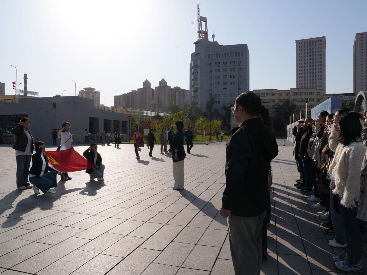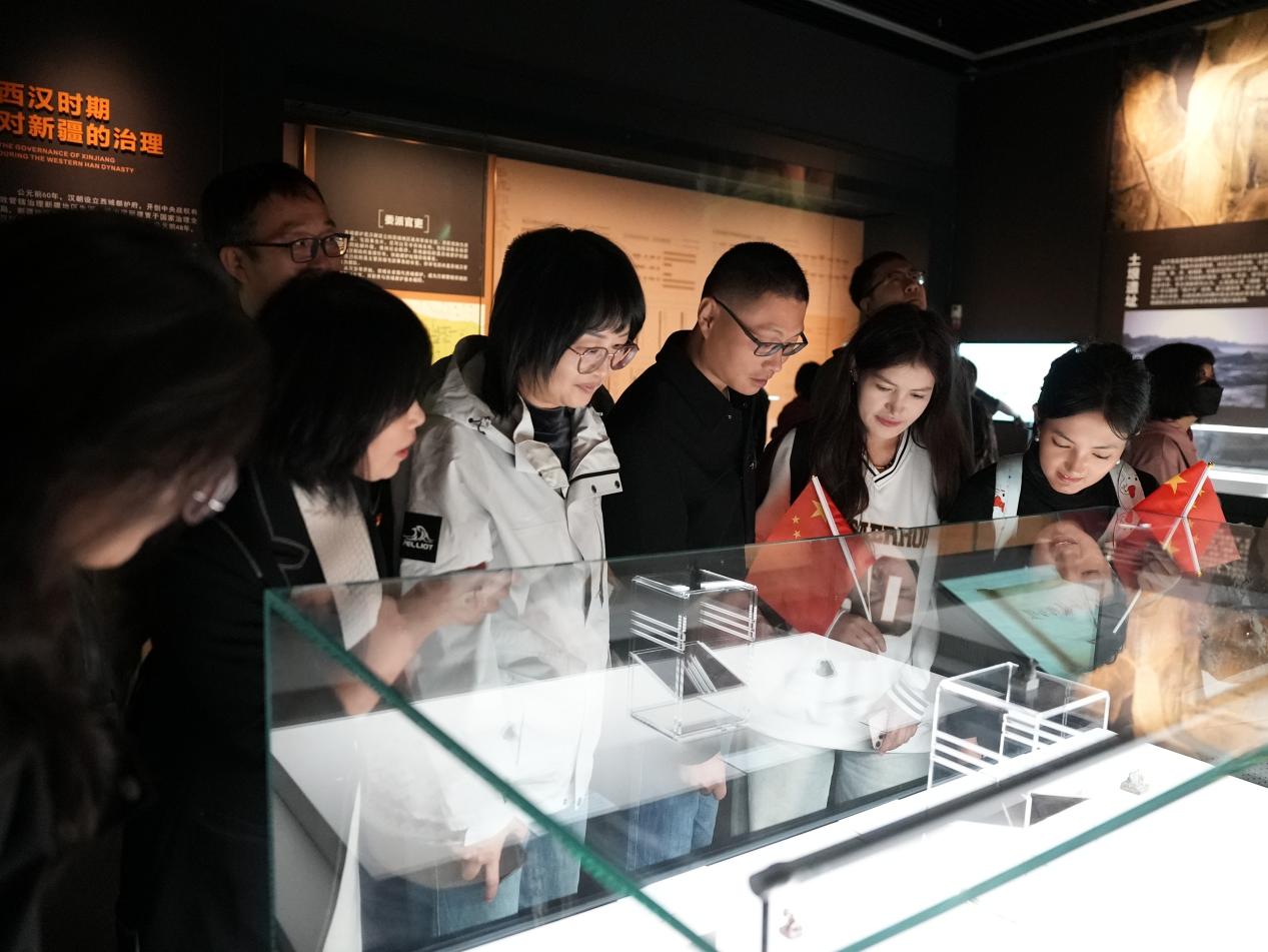 在新疆维吾尔自治区博物馆前,全体师生党员面向党旗重温入党誓词,铿锵誓言回荡在展厅前。驻足在新疆历史文物展馆,中国近代史纲要教研室党支部书记张彦虎以“弘扬伟大抗战精神 坚定信念砥砺前行”为题讲授微党课,回顾峥嵘岁月,激励师生传承红色基因;中华民族共同体概论教研室党支部苗鹏举带来“铸牢中华民族共同体意识的理论与实践”微思政课,结合新疆历史阐释“中华民族一家亲”的深刻内涵。师生触摸着历史文物,诉说着文物背后的动人故事,感受着多民族交融共生的深厚情谊,一个个“沉浸式”体验成为师生感受民族团结教育的生动教材。