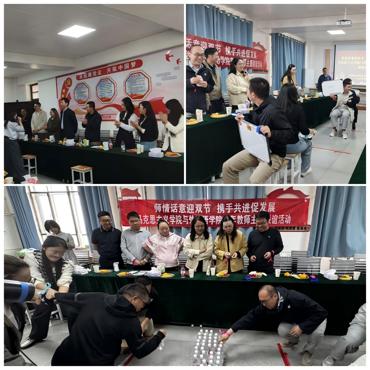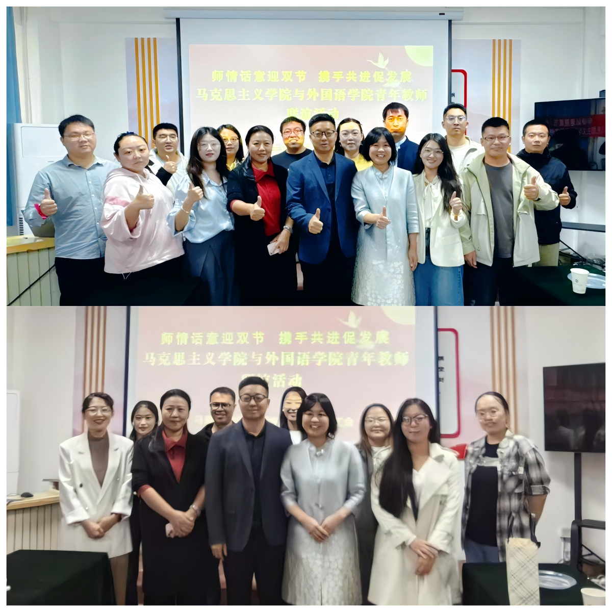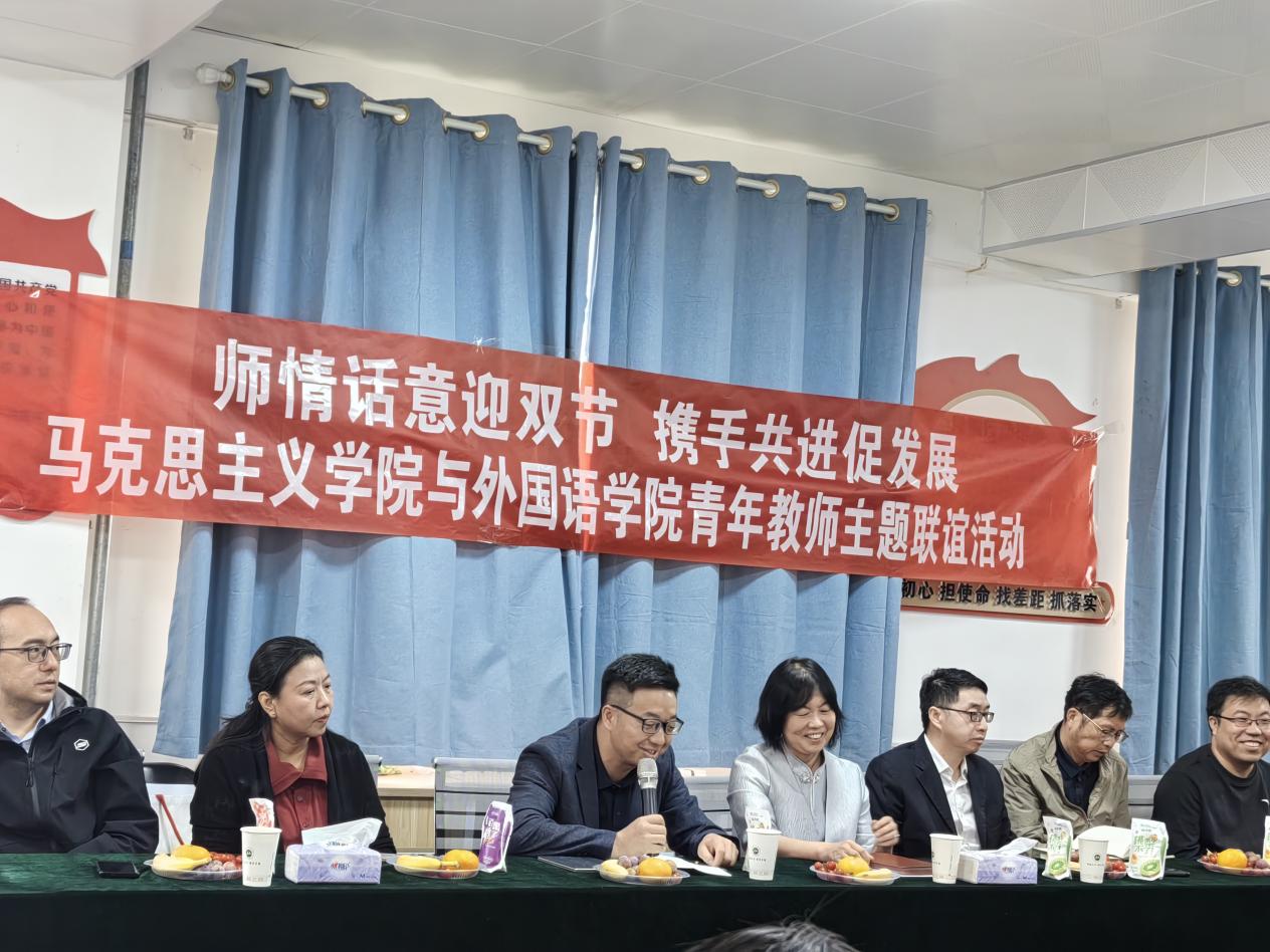 金秋送爽,丹桂飘香。在国庆、中秋双节即将到来之际,为搭建跨学院青年教师交流平台,凝聚教学科研合力,助力学院高质量发展,9月30日,马克思主义学院工会与外国语学院工会联合举办“师情话意迎双节 携手共进促发展”青年教师联谊活动。老教师代表、两院新进教师、在读博士们齐聚一堂,共话情谊、共促成长。
