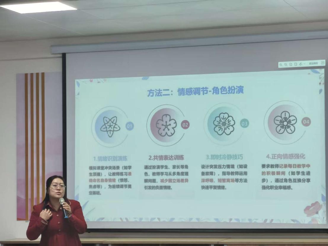 师范学院张莉琴教授以“高校教师身份转换期的积极心态构建密码”为题,为青年教师们开展心理讲座,结合自身教学经历,为青年教师缓解工作压力、调节心理状态提供了专业指导以及实用的心理调适方法,帮助大家以更积极的心态投入教学科研工作,健康快乐地工作和生活。