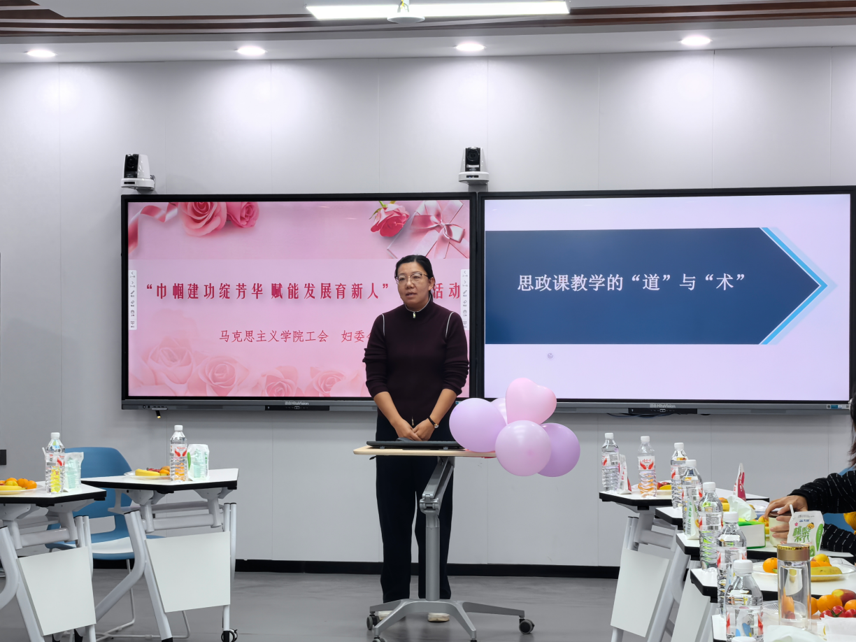 为弘扬新时代女性力量,进一步提升女教师教学科研能力,缓解职业压力,更好地匠心育人,10月23日下午,马克思主义学院工会、妇委会在院智慧教室举办了“巾帼建功绽芳华 赋能发展育新人”主题活动。学院党委书记桑华、学院工会副主席闫新勇和女教职工参加了此次活动,活动由学院工会女工委员柏杨主持。