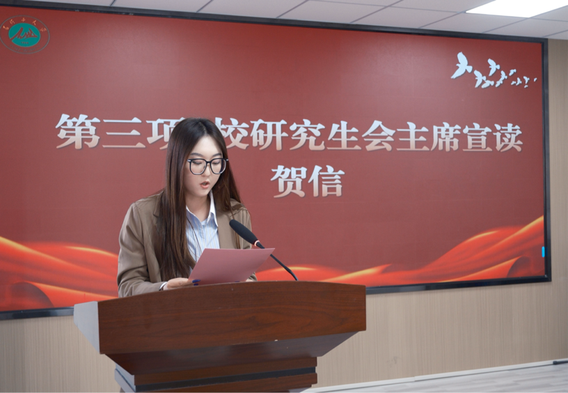 石河子大学校研究生会主席李玉婧宣读大会贺信。会议听取并审议了《马克思主义学院第十三届研究生会工作报告》,该报告全面总结回顾了学院研究生会2024-2025学年的工作成果,客观分析了存在问题与不足,并对未来研究生会工作进行了展望。