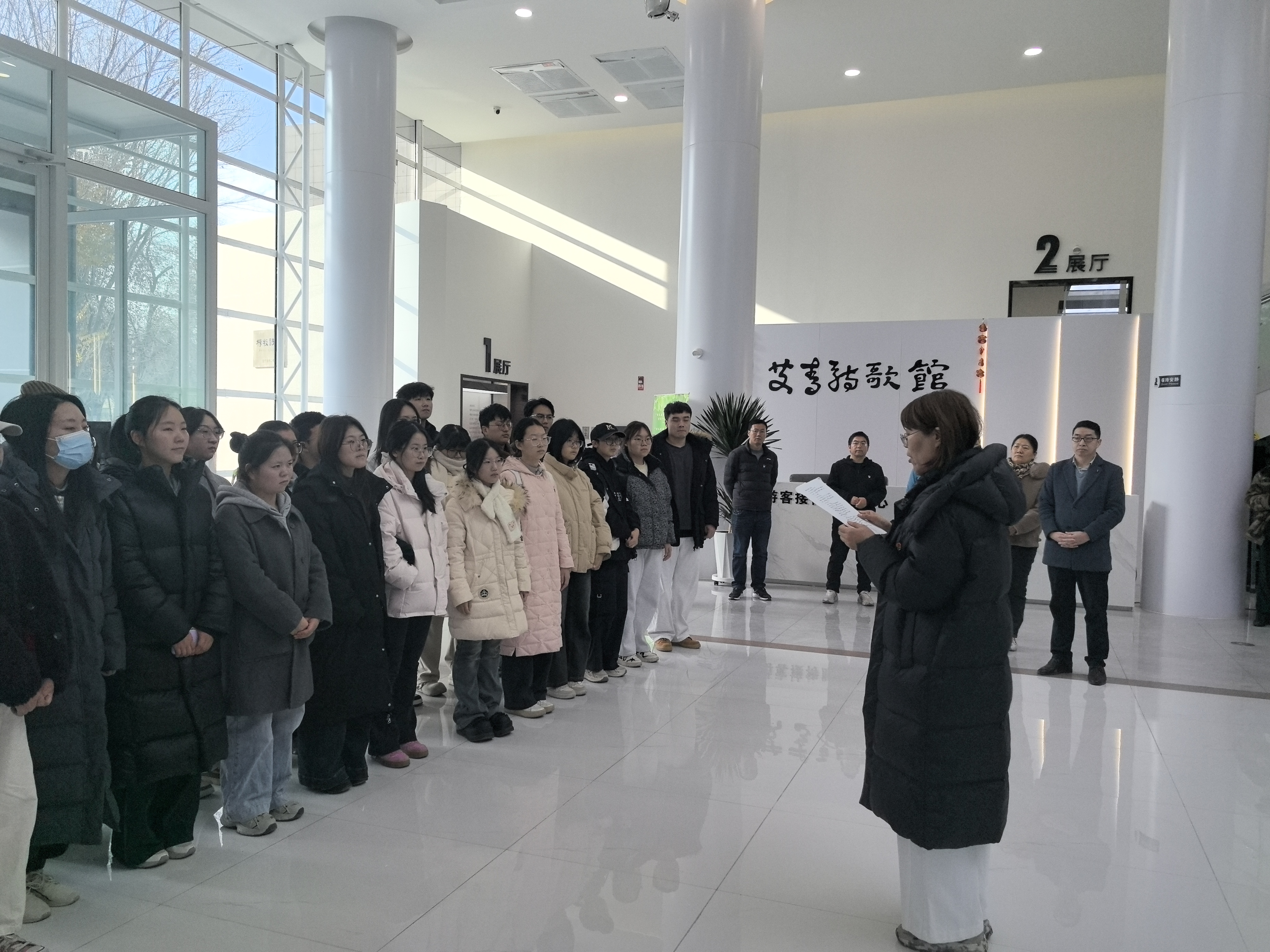 挂牌即开课,实践见真章。仪式结束后,在专业讲解员的引导下,师生们共同走进实践场地,通过实物展品、场景复原等载体沉浸式感悟兵团精神。马克思主义学院肖庆华在艾青诗歌馆现场教学时指出,艾青诗歌的家国情怀与兵团精神一脉相承,是近现代史教育生动教材。现场教学打破课堂边界,以诗歌与历史交融深化认知、筑牢担当,让学生在行走课堂中感悟初心、锤炼品格。