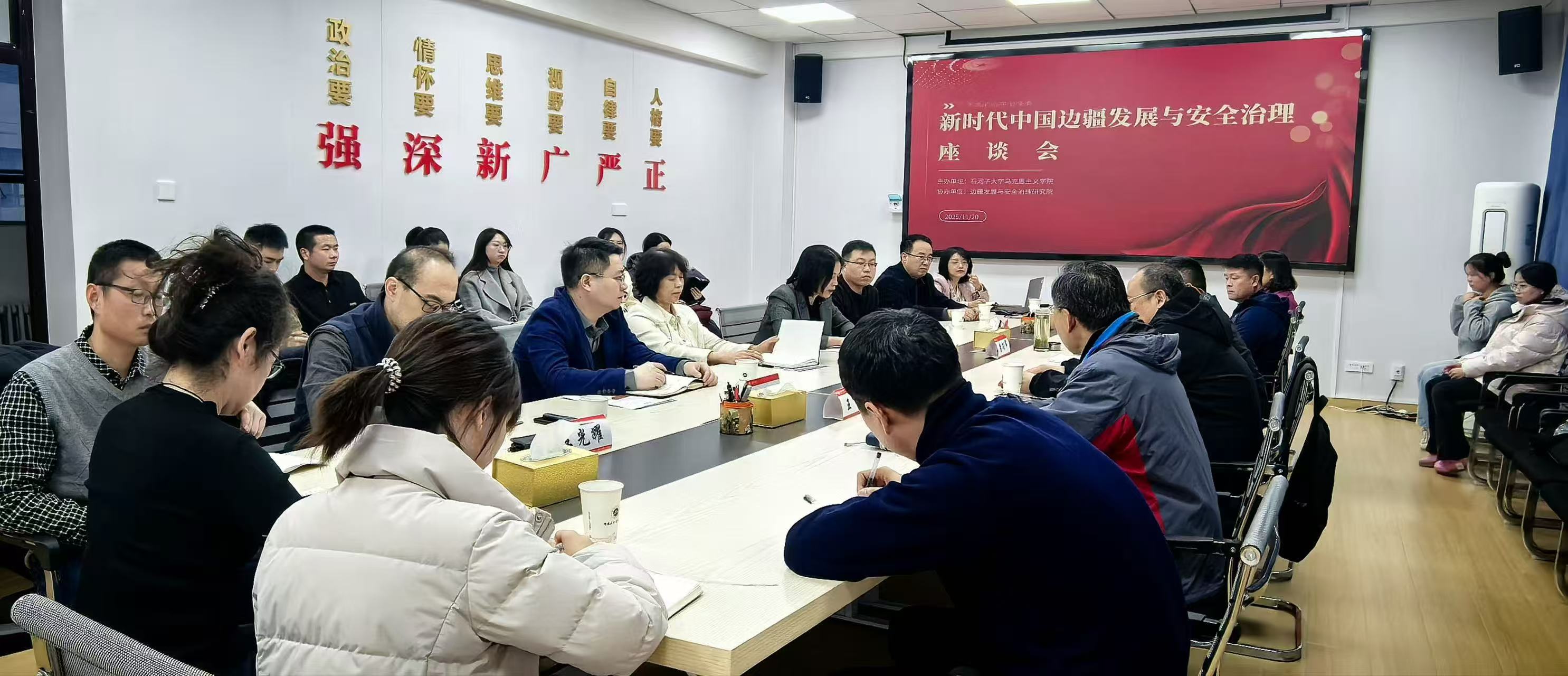 期间,院领导和部分师生代表参加“新时代中国边疆发展与安全治理”专题座谈会。座谈会上,学院党委书记桑华介绍了学院发展情况,边疆安全与治理研究院院长王光耀汇报了理论研究与实践工作及成果。三位与会专家与学院师生围绕“新时代中国边疆发展与安全治理”、如何加强铸牢中华民族共同体意识研究与实践等进行了深入交流,并为学院学科发展做了指导。张晓红结合学院实际作总结,指出要强化民族理论与边疆治理的跨学科研究,推动“文化润疆”与思政教育深度融合。她希望全院师生以此次活动为新起点,潜心科研,为服务国家战略需求和边疆治理贡献学术力量。