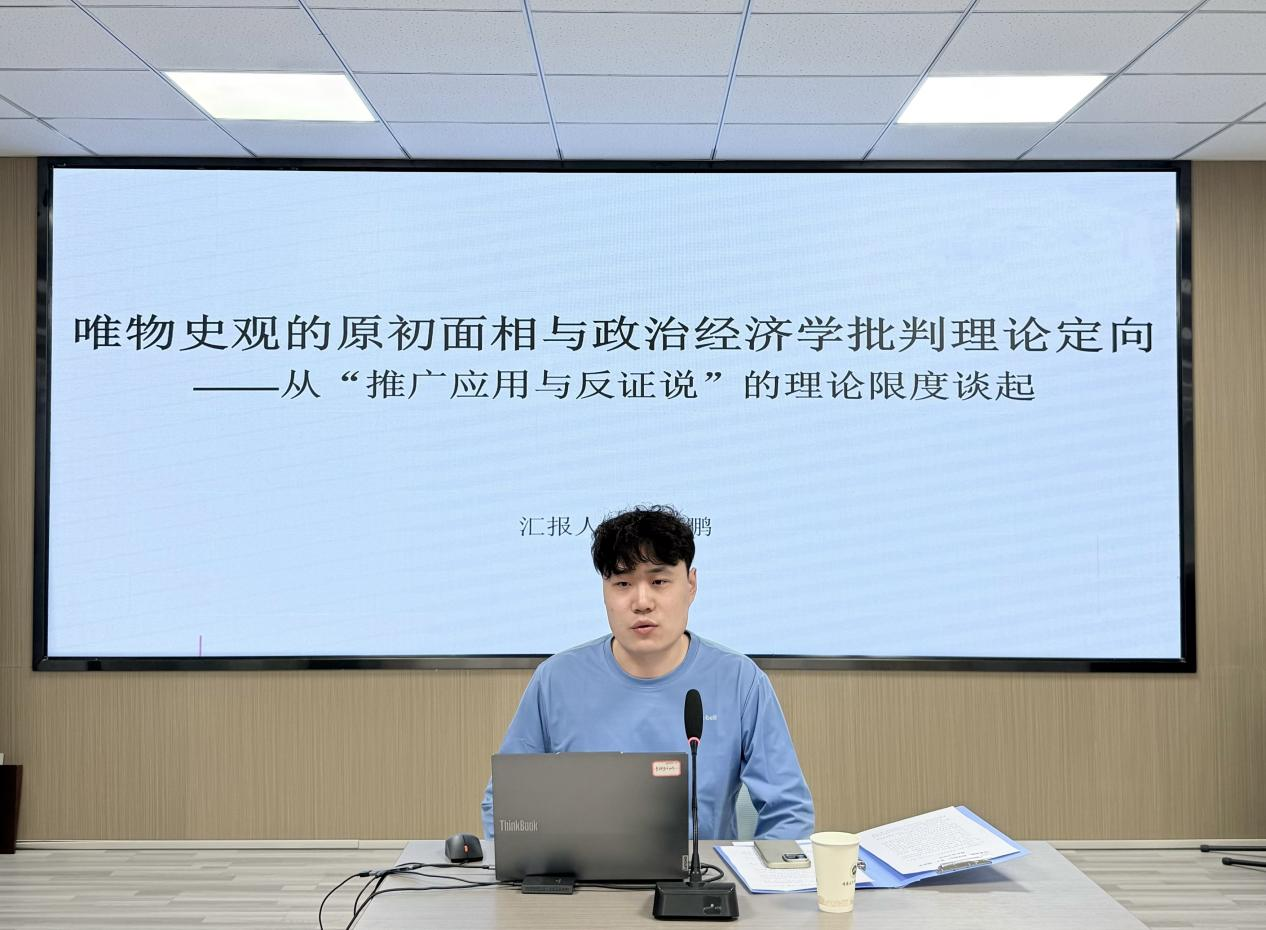 活动伊始,齐承水老师以《德意志意识形态》的文本逻辑与当代价值为核心,系统剖析了唯物史观的历史背景、核心内容及其对当代社会的启示。2023级研究生王展鹏从“推广应用与反证说”的理论限度出发,剖析了阿尔都塞人为制造出马克思哲学革命与政治经济学批判之间断裂的理论症结,还原了唯物史观的原初面相,说明二者始终处于内在统一的思想逻辑之中,为大家厘清了马克思经典理论的真实发展脉络。
