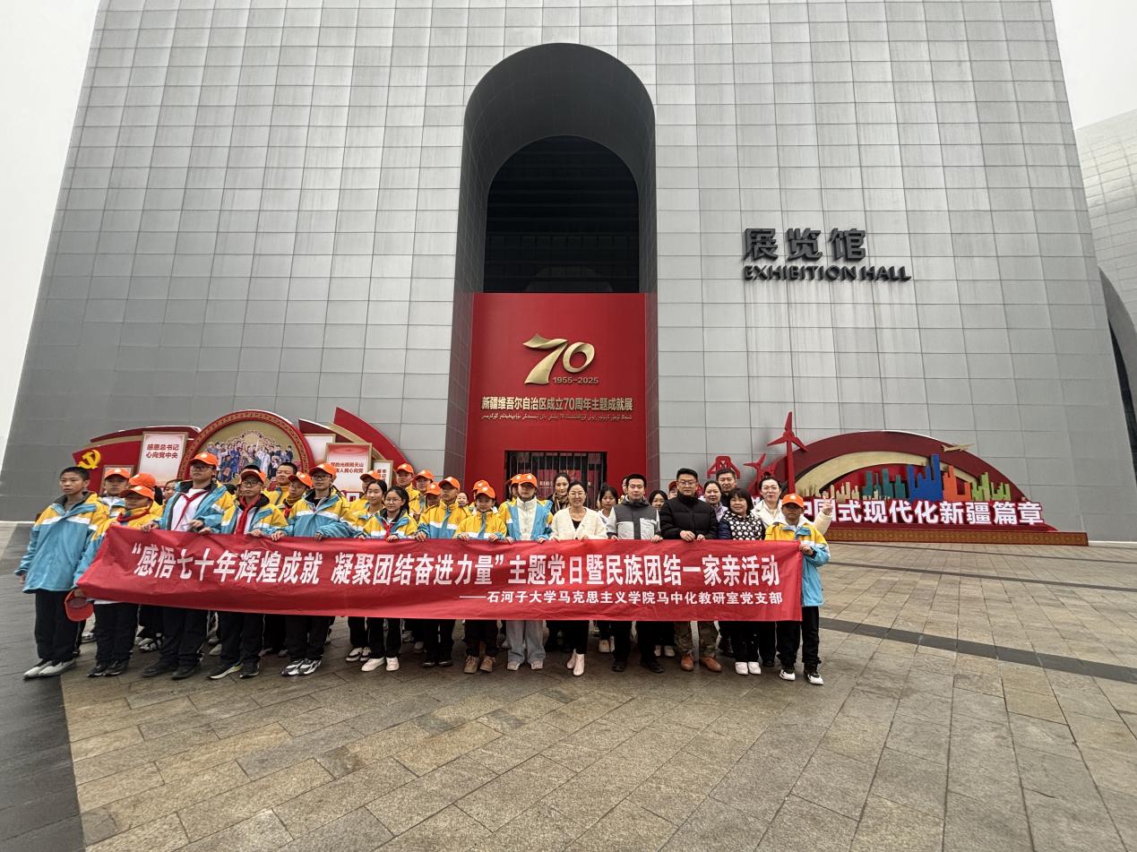 为深入学习贯彻习近平总书记在出席新疆维吾尔自治区成立70周年庆祝活动期间的重要讲话重要指示精神,深刻感悟新疆七十年来取得的辉煌成就与历史性变革,进一步铸牢中华民族共同体意识,增强党支部的凝聚力与战斗力,11月29日,马克思主义学院马中化党支部组织全体党员及结对“小亲戚”赴新疆维吾尔自治区文化馆(新疆维吾尔自治区成立70周年成就馆),开展“感悟七十年辉煌成就 凝聚团结奋进力量”主题党日暨“民族团结一家亲”活动。