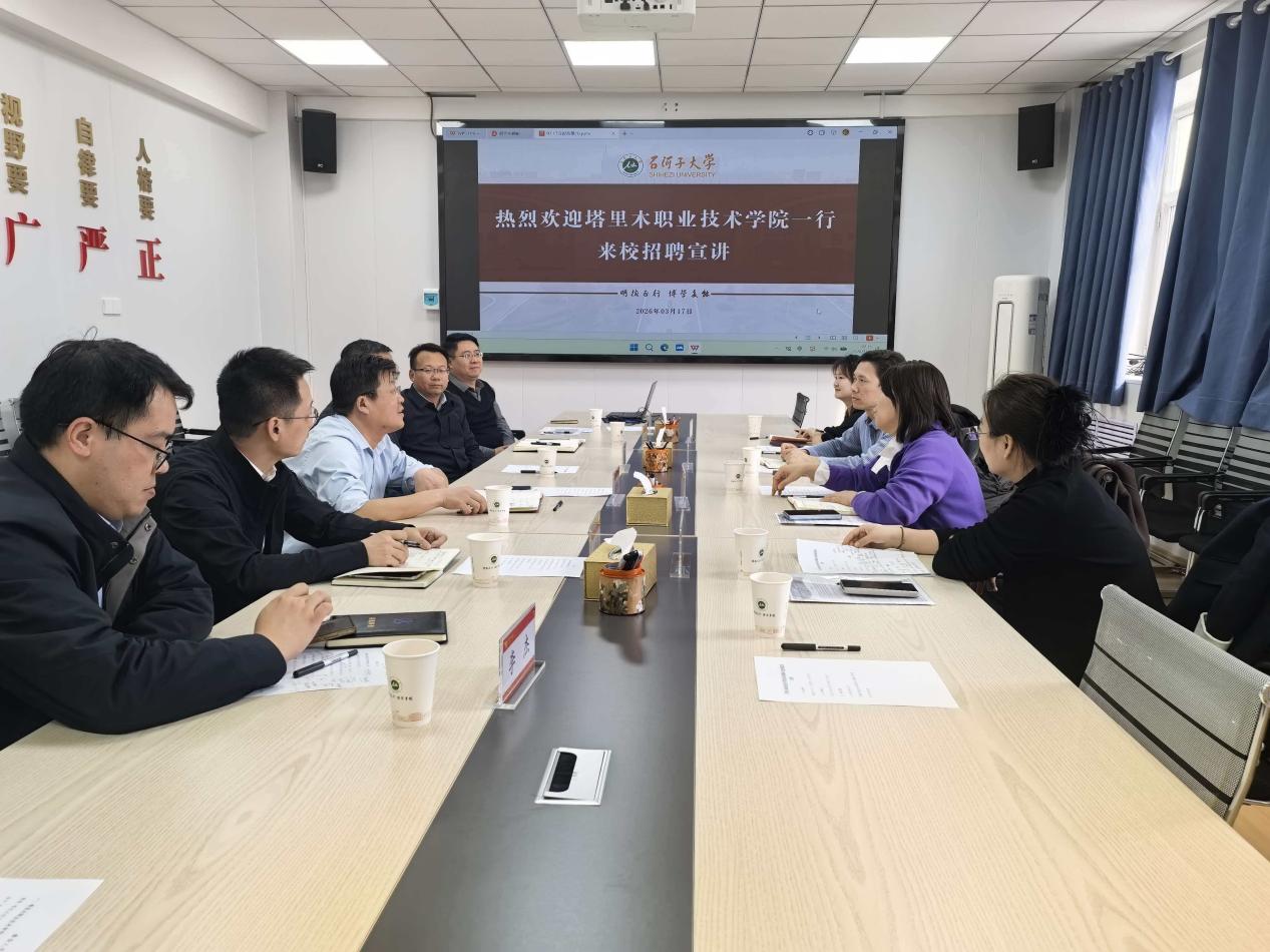 梁修韦指出,学校党委始终高度重视服务南疆高等教育发展。此次塔里木职业技术学院来我校和马克思主义学院开展人才引进工作,是双方携手服务兵团、扎根南疆事业的具体行动,也为进一步深化校际合作开创了良好开端。