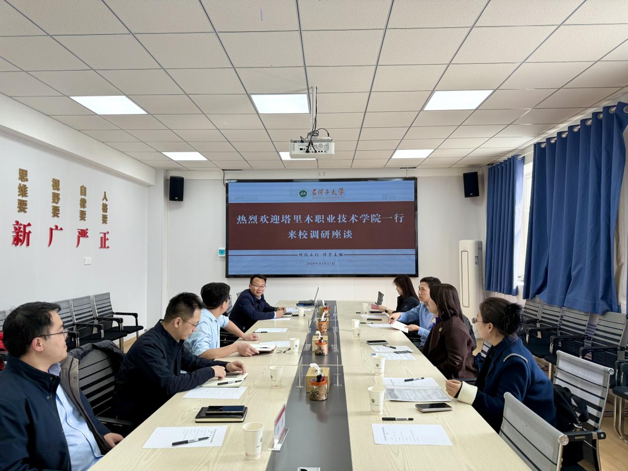 3月18日,塔里木职业技术学院党委书记曾晓一行来到石河子大学马克思主义学院,围绕人才招聘、师资培养、科研合作等方面开展调研交流。党委学生工作部部长梁修韦,马克思主义学院副院长朱文及各职能部门领导参加座谈。